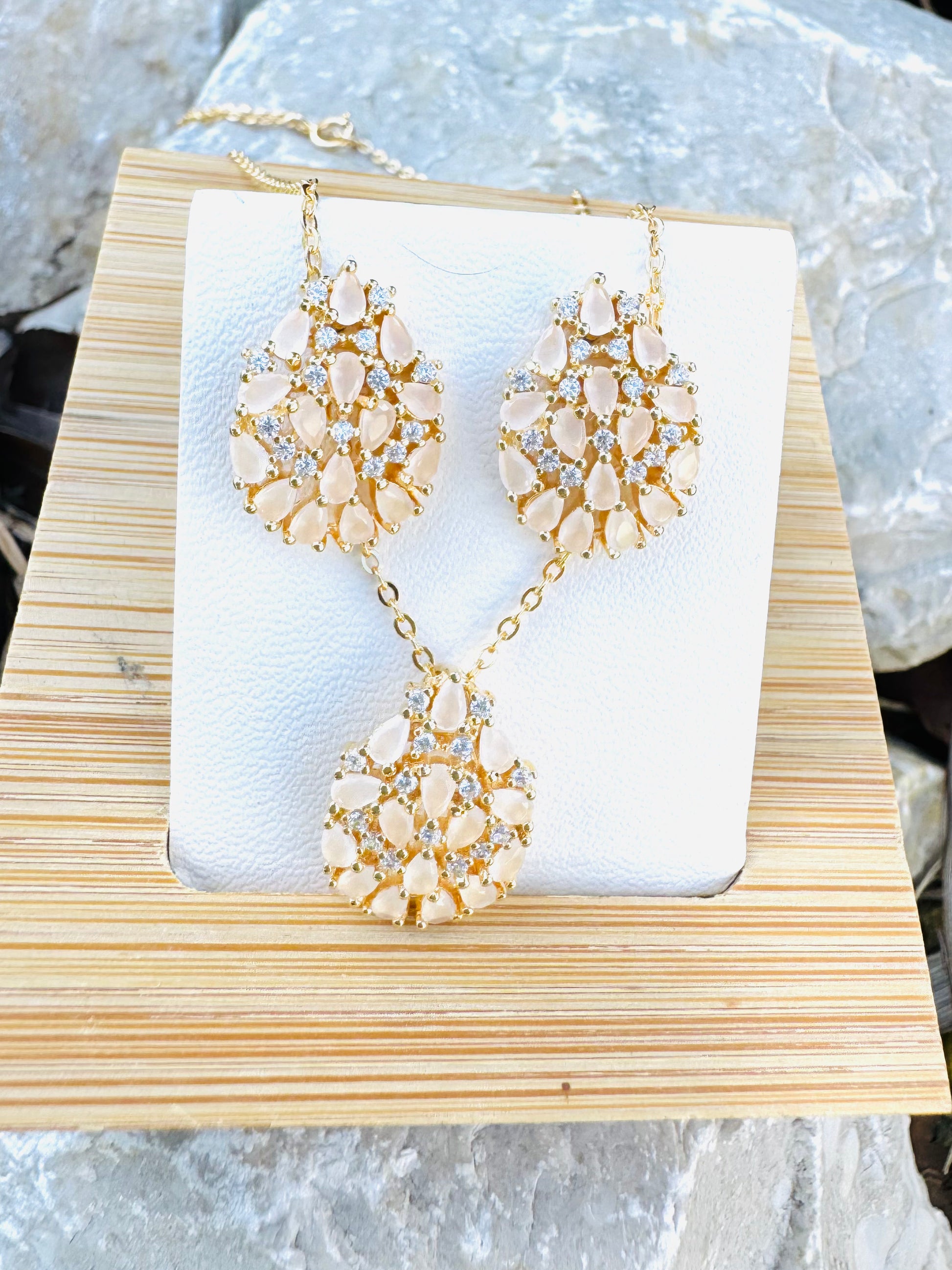 Plata 925 Chapado En Oro Con Piedras Zirconias y Piedras De Cuarzo Rosado,43 CM