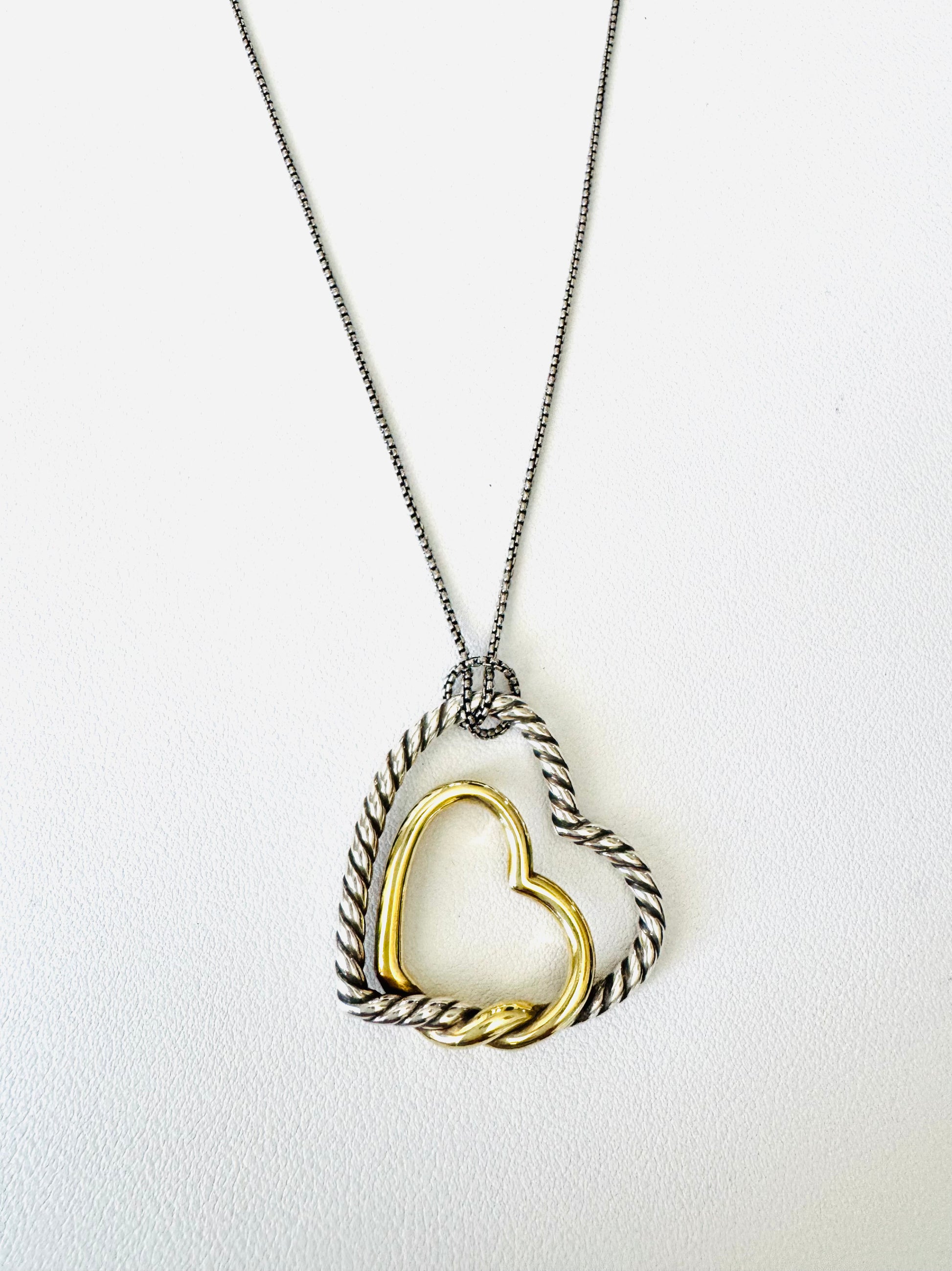 Cadena Con Colgante De Corazon Dos Tonalidades De Oro,Talla 88 CM Ajustable Amenor Tamaño.Metal Cobre Chapado En Oro.