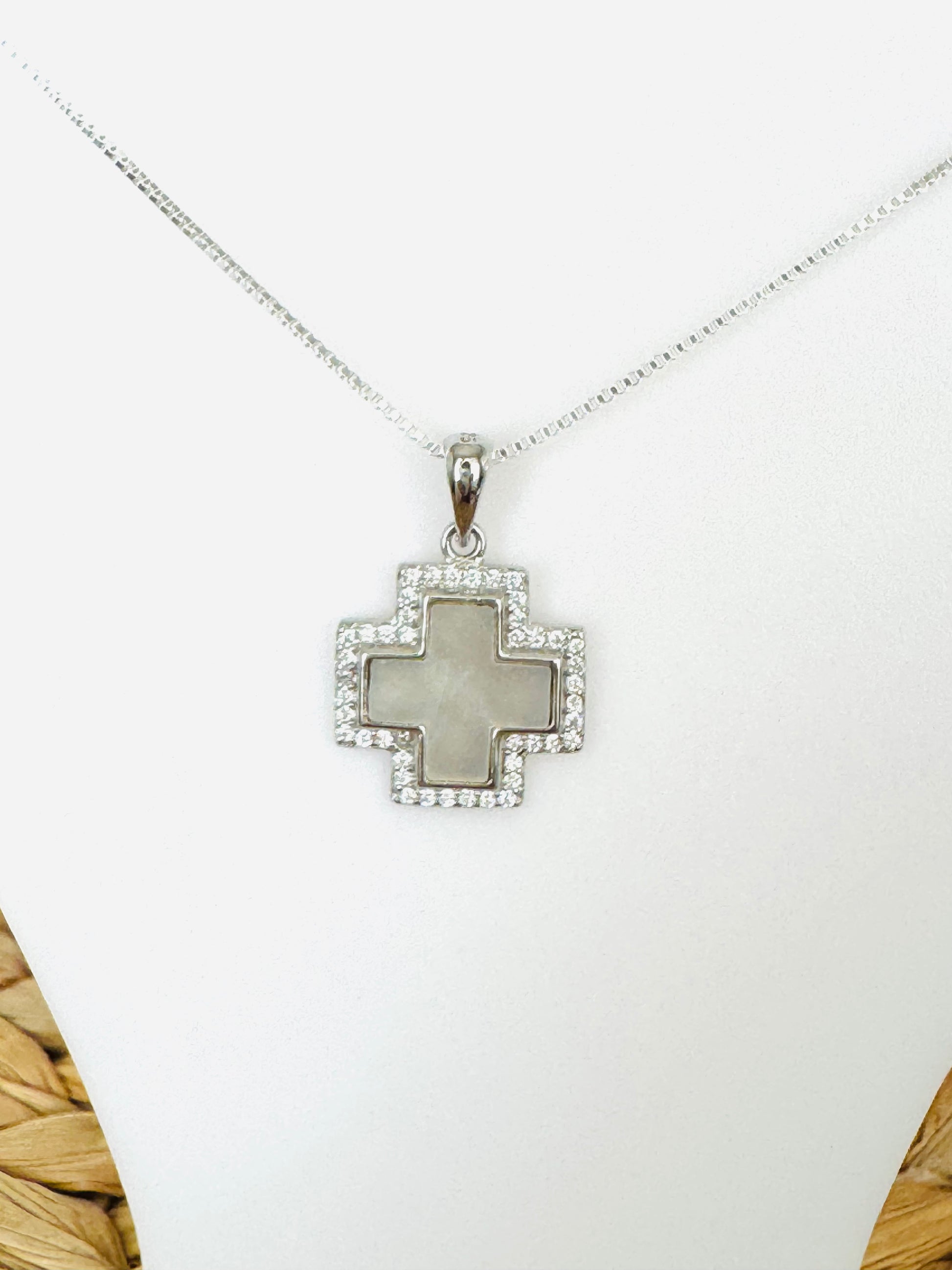Cadena Con Cruz Plata 925 Chapado En Oro Blanco.