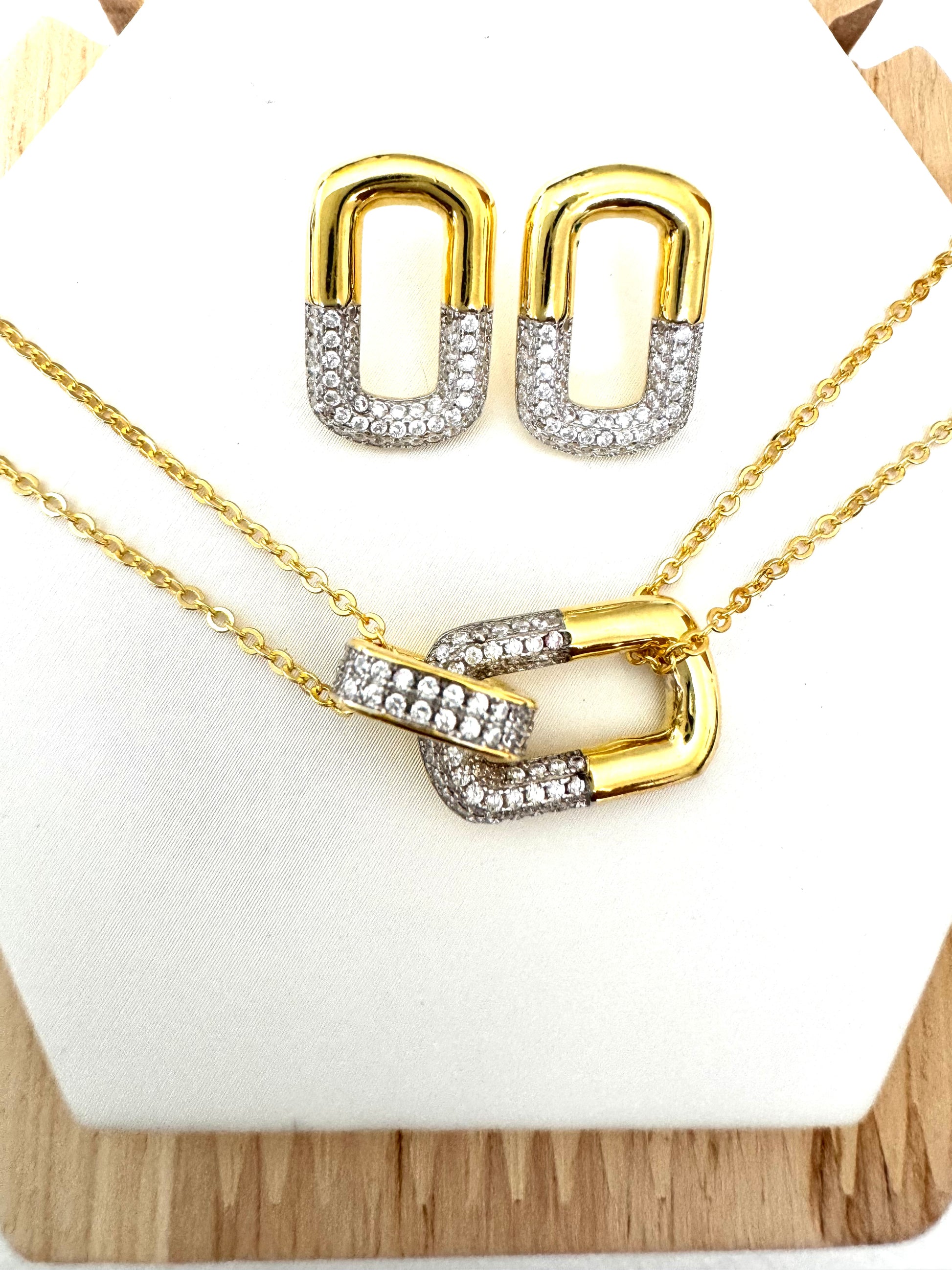 Conjunto Plata 925 Chapado En Oro,Con Circonitas Pavé,Talla 45CM Ajustable A Menor Talla.
