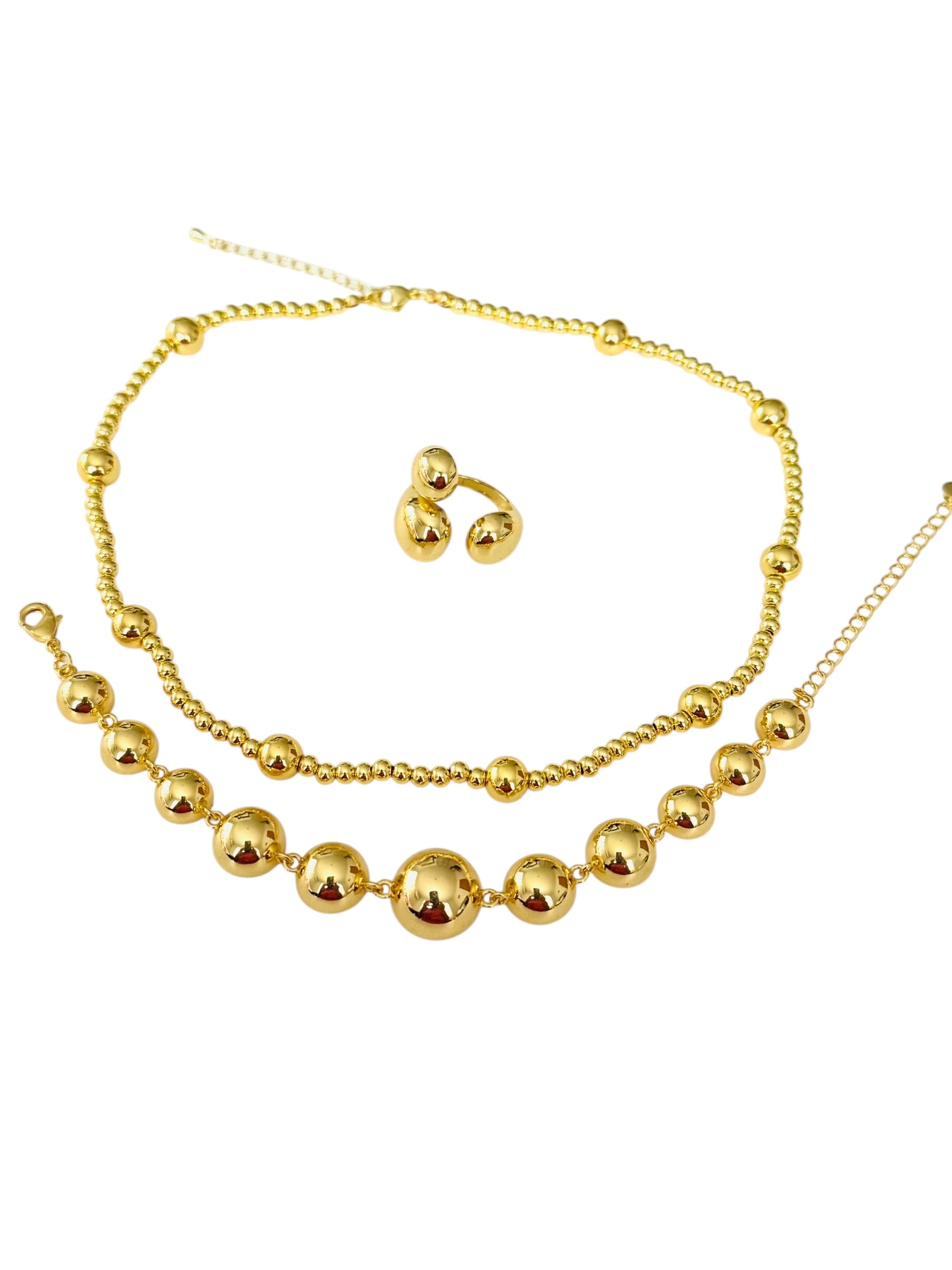 Collar De Bolas,Chapado En Oro,Talla 41 CM + 4 CM Expansion.