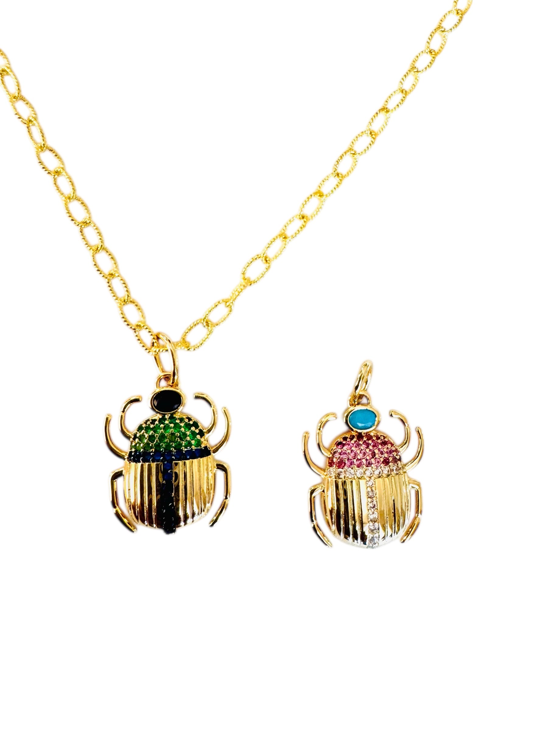 Cadena Plata 925, Opción 42 CM Y 46 CM, Con Escarabajo,Metal Brass Chapado En Oro. Uno Azul Turquesa Y Rojo , Uno Con Con Piedras Azul Zafiro Y Piedras Verdes.