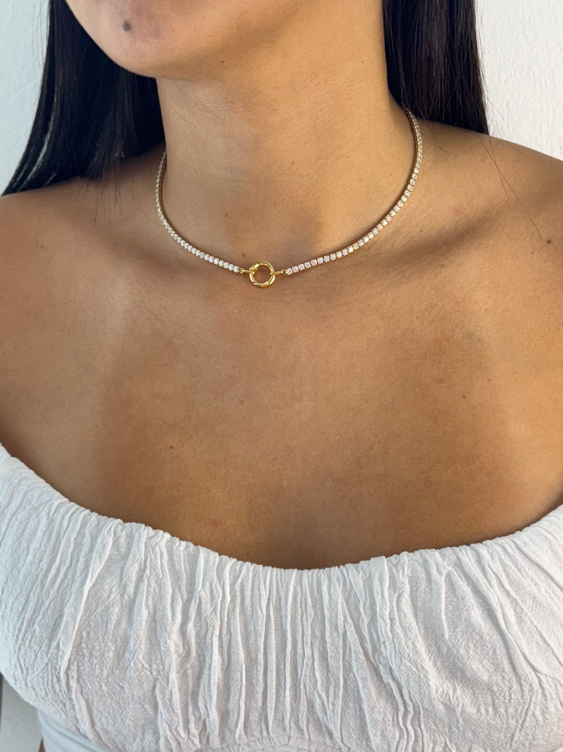 Cadena Plata 925 Chapado En Oro,Con Zirconitas,Talla 46 CM,Ajuatable A 4 tallas.